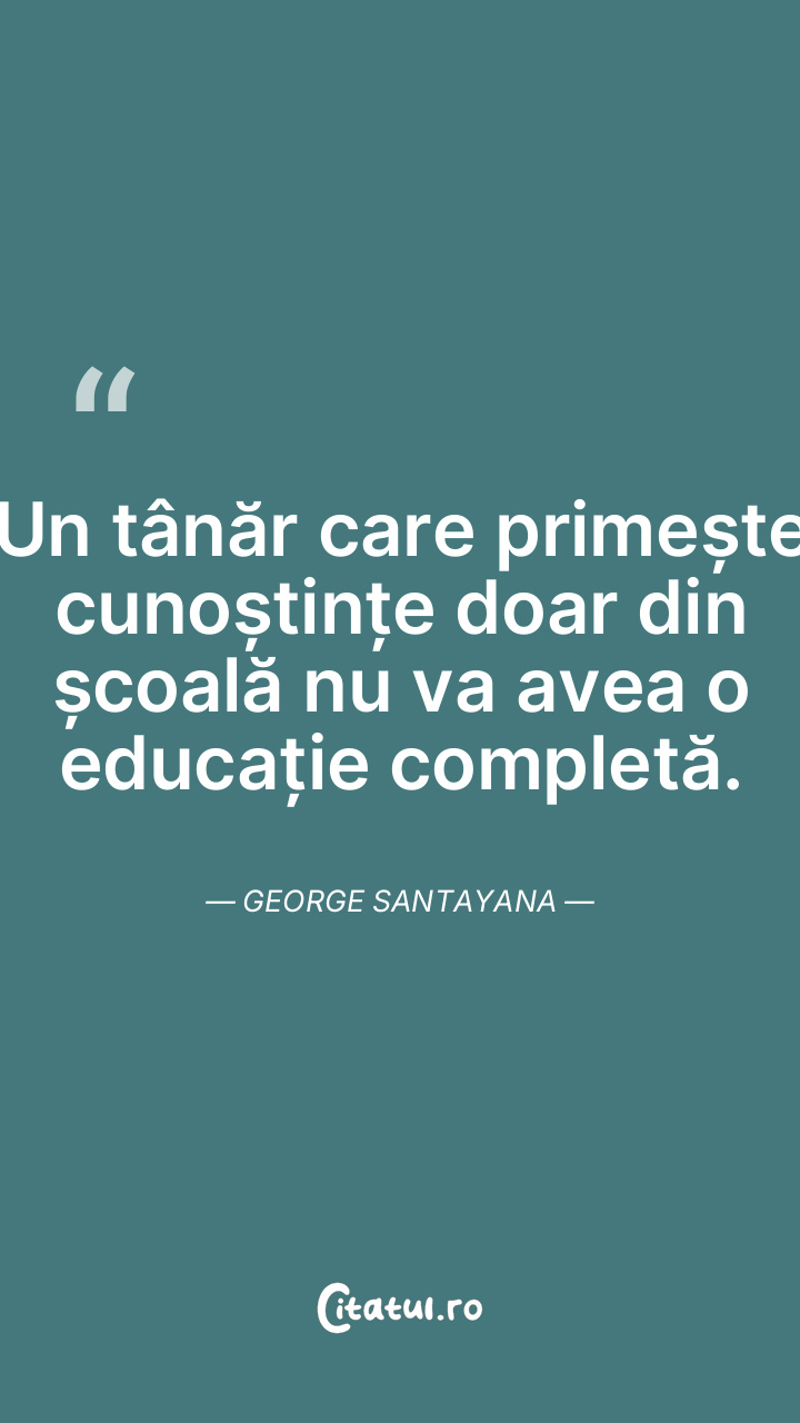 Un tânăr care primește cunoștințe doar din școală nu va avea o educație completă. George Santayana