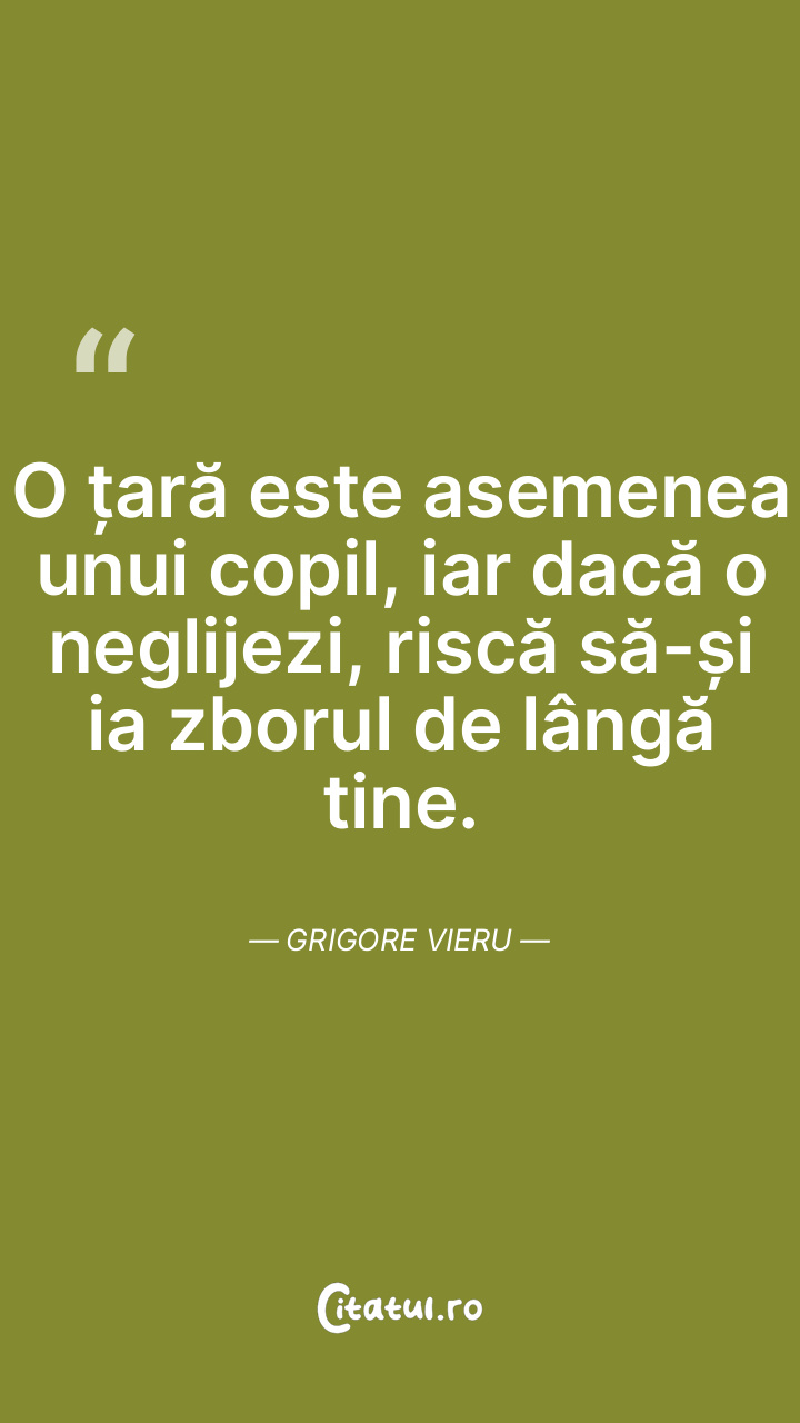 O țară este asemenea unui copil, iar dacă o neglijezi, riscă să-și ia zborul de lângă tine. Grigore Vieru