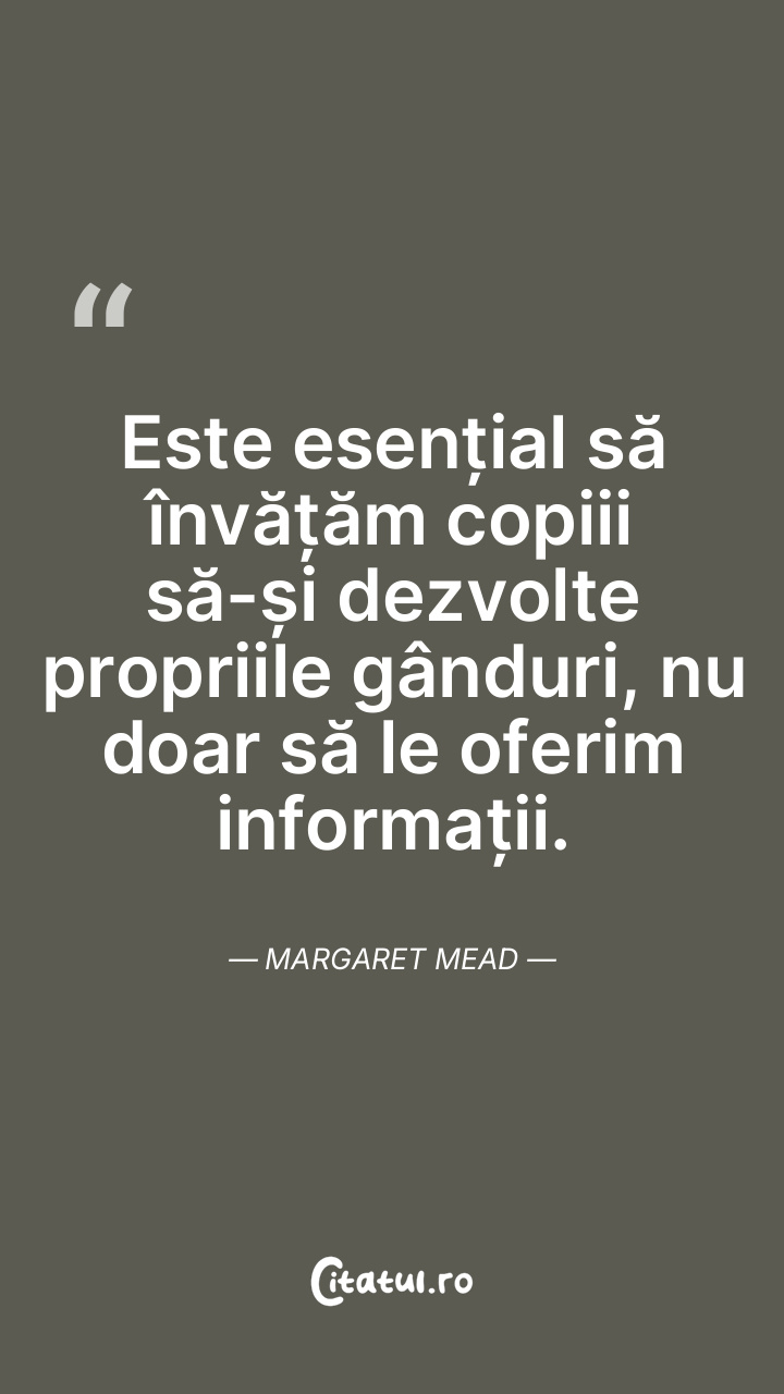 Este esențial să învățăm copiii să-și dezvolte propriile gânduri, nu doar să le oferim informații. Margaret Mead
