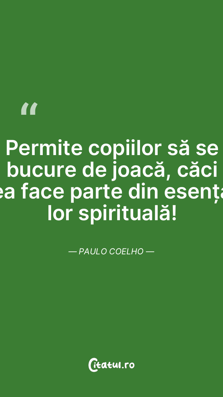 Permite copiilor să se bucure de joacă, căci ea face parte din esența lor spirituală! Paulo Coelho