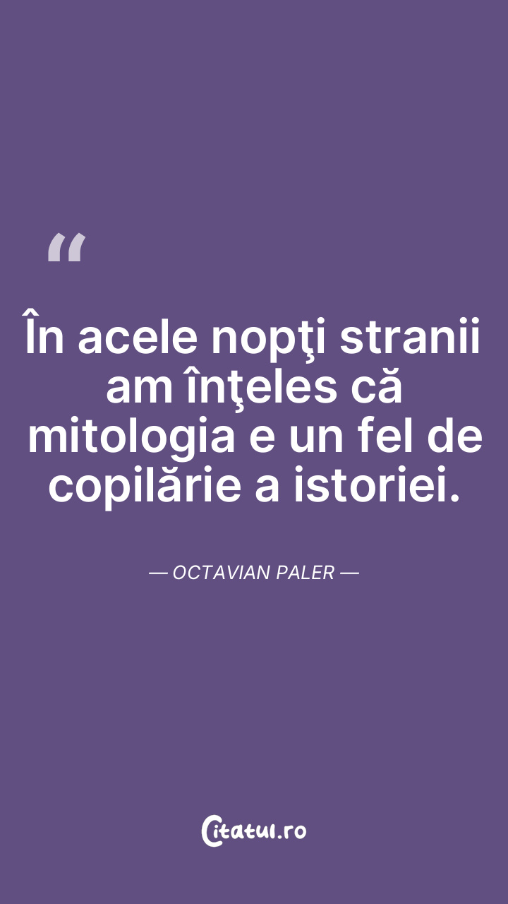 În acele nopţi stranii am înţeles că mitologia e un fel de copilărie a istoriei. Octavian Paler