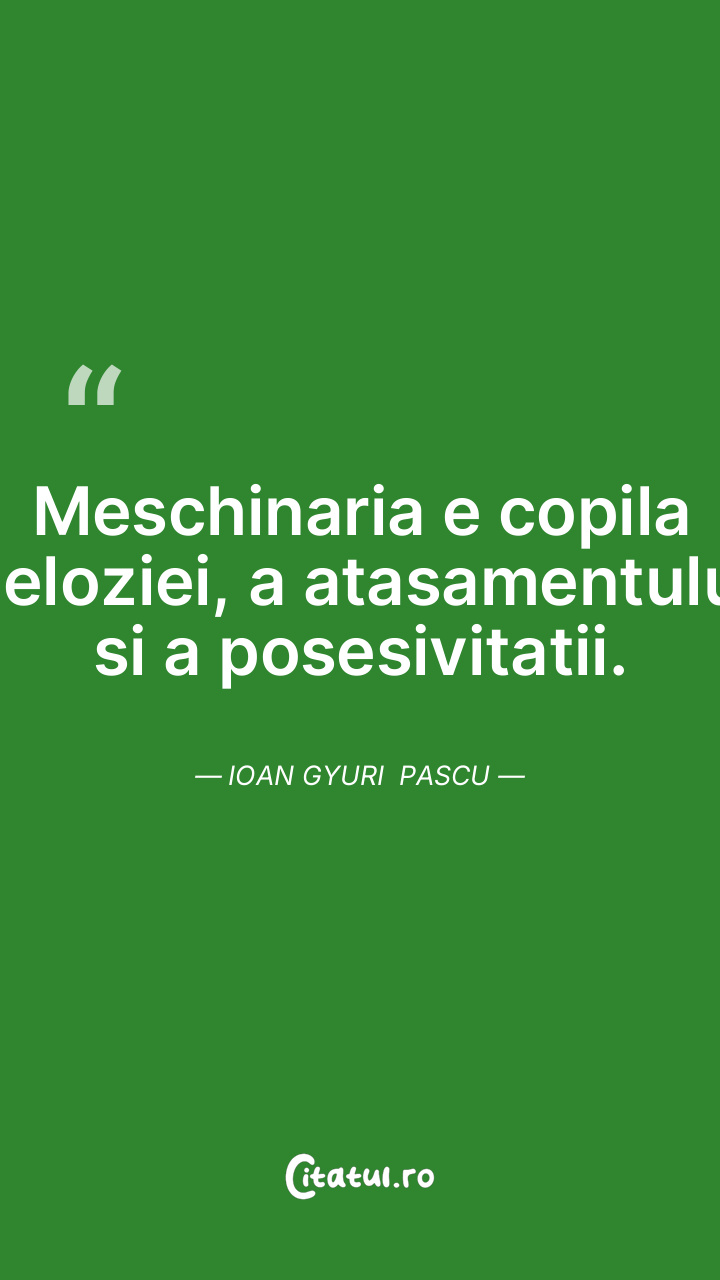 Meschinaria e copila geloziei, a atasamentului si a posesivitatii. Ioan Gyuri Pascu