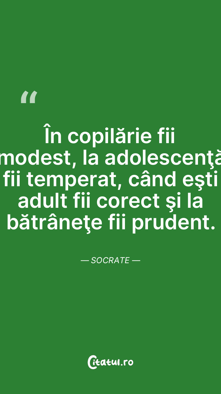 În copilărie fii modest, la adolescenţă fii temperat, când eşti adult fii corect şi la bătrâneţe fii prudent. Socrate