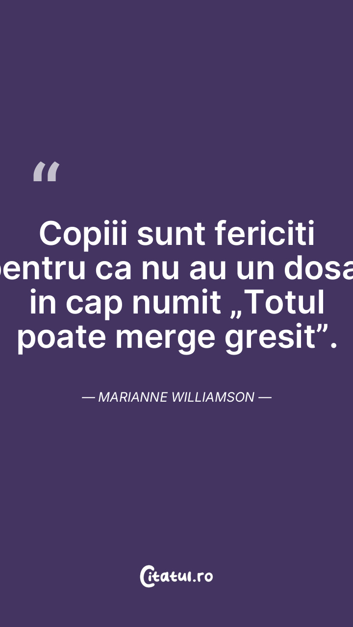 Copiii sunt fericiti pentru ca nu au un dosar in cap numit „Totul poate merge gresit”. Marianne Williamson