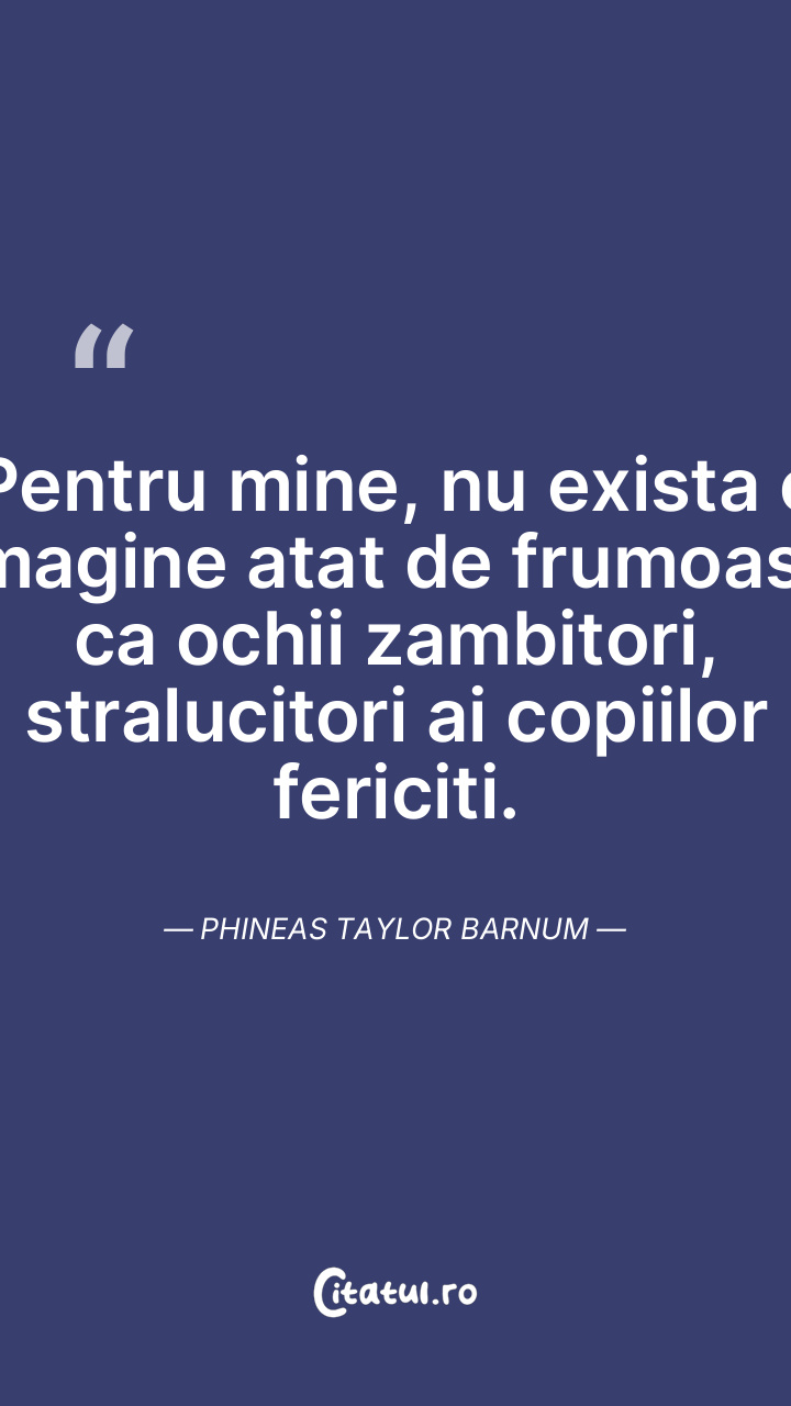 Pentru mine, nu exista o imagine atat de frumoasa ca ochii zambitori, stralucitori ai copiilor fericiti. Phineas Taylor Barnum