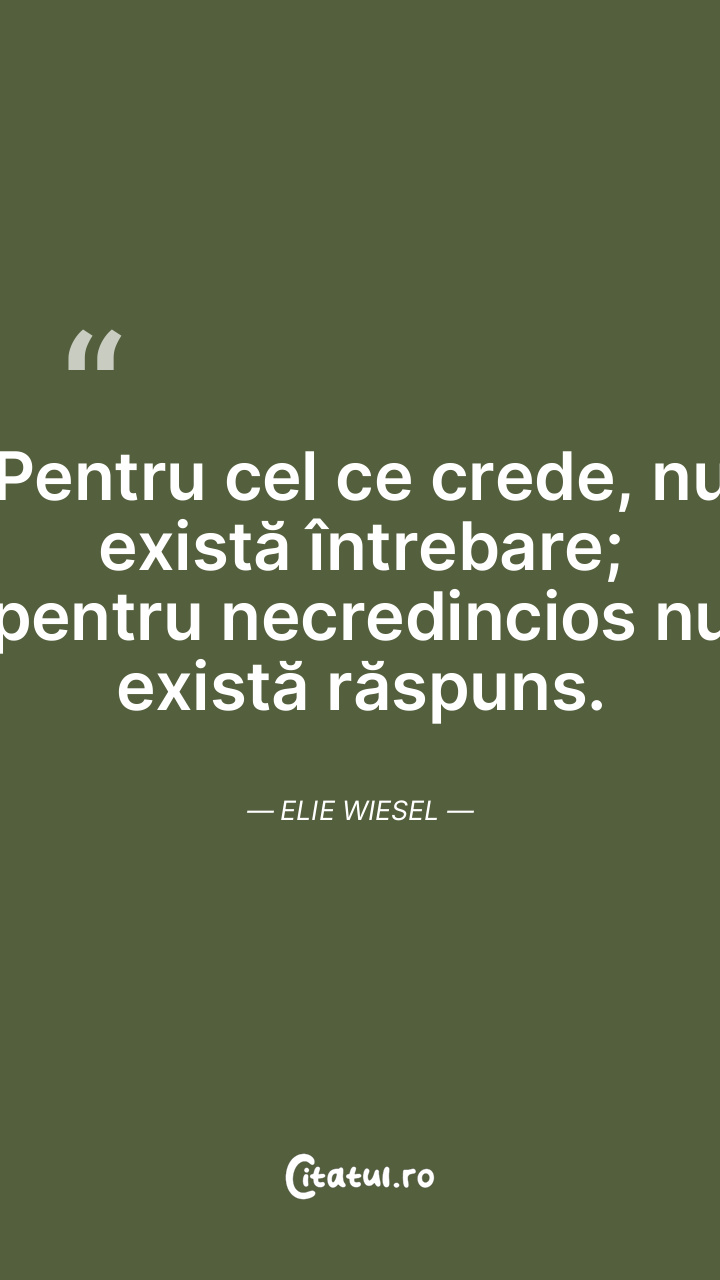 Pentru cel ce crede, nu există întrebare; pentru necredincios nu există răspuns. Elie Wiesel