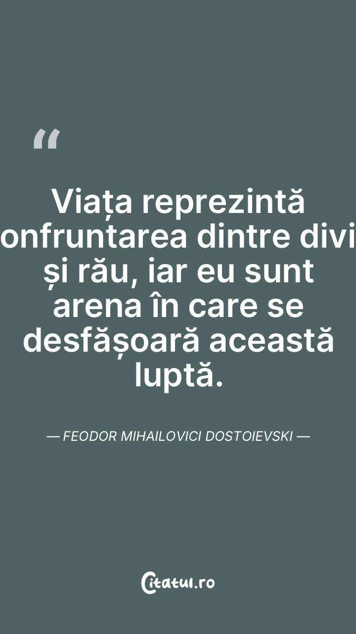 Viața reprezintă confruntarea dintre divin și rău, iar eu sunt arena în care se desfășoară această luptă. Feodor Mihailovici Dostoievski