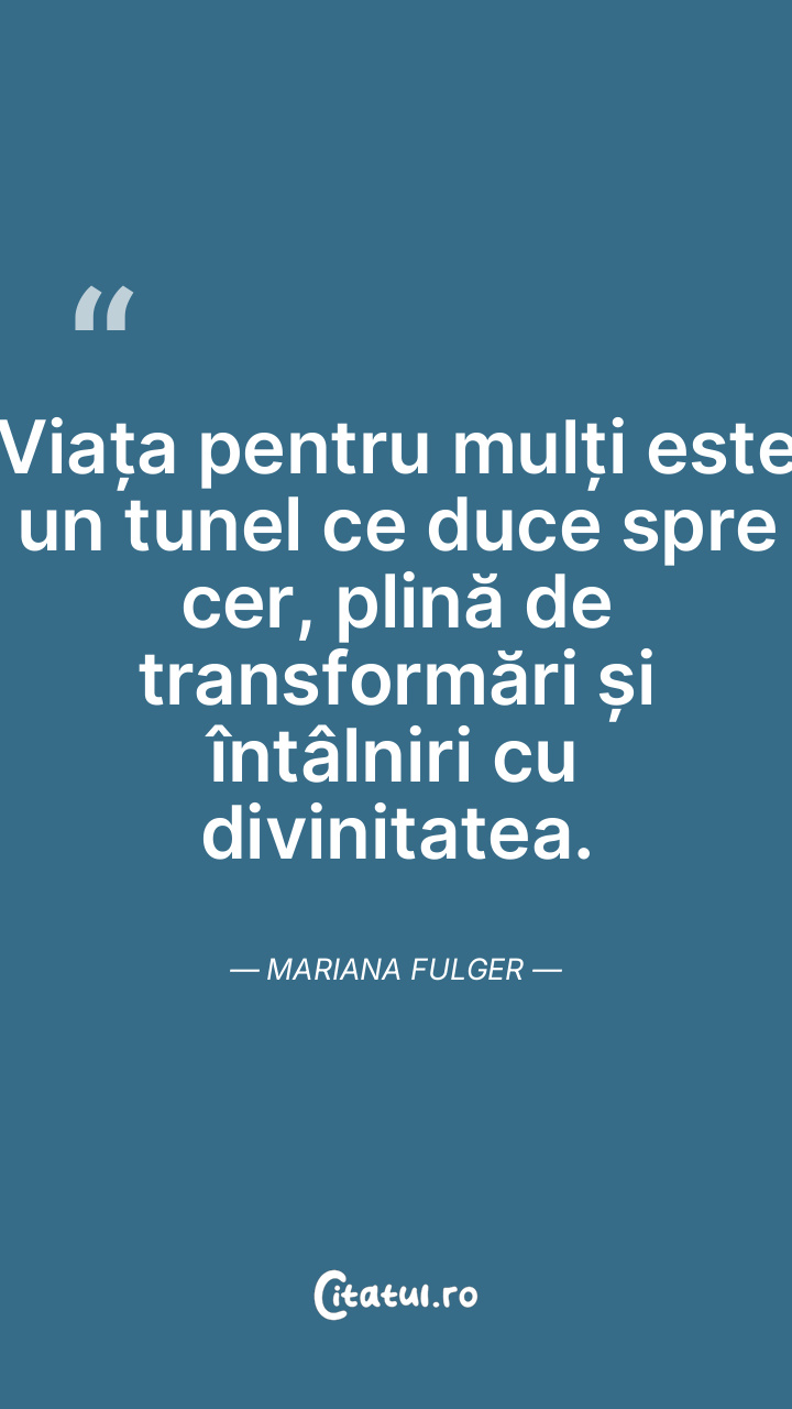 Viața pentru mulți este un tunel ce duce spre cer, plină de transformări și întâlniri cu divinitatea. Mariana Fulger