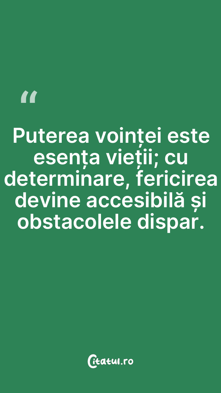 Puterea voinței este esența vieții; cu determinare, fericirea devine accesibilă și obstacolele dispar.