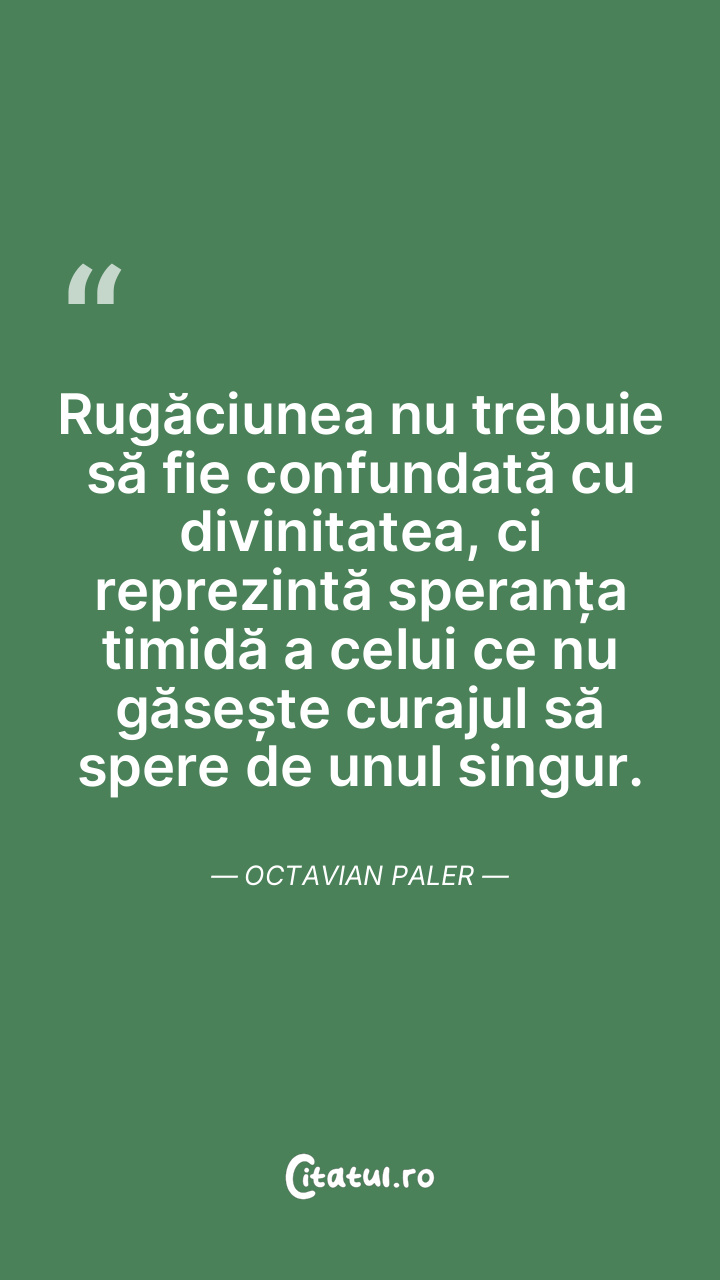 Rugăciunea nu trebuie să fie confundată cu divinitatea, ci reprezintă speranța timidă a celui ce nu găsește curajul să spere de unul singur. Octavian Paler