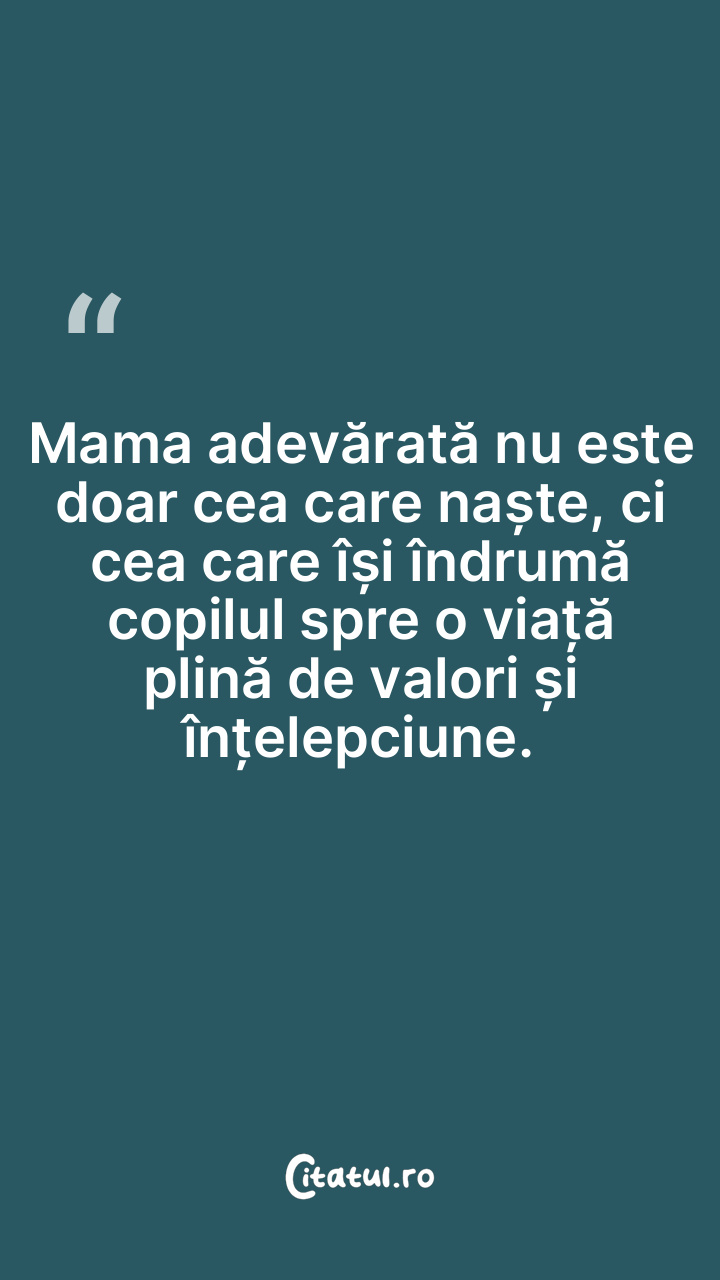 Mama adevărată nu este doar cea care naște, ci cea care își îndrumă copilul spre o viață plină de valori și înțelepciune.
