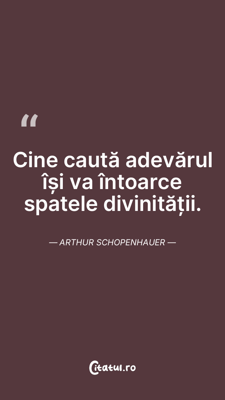 Cine caută adevărul își va întoarce spatele divinității. Arthur Schopenhauer