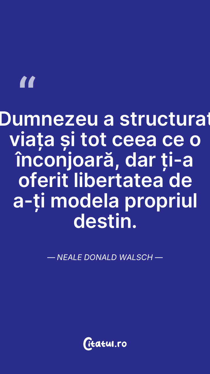 Dumnezeu a structurat viața și tot ceea ce o înconjoară, dar ți-a oferit libertatea de a-ți modela propriul destin. Neale Donald Walsch