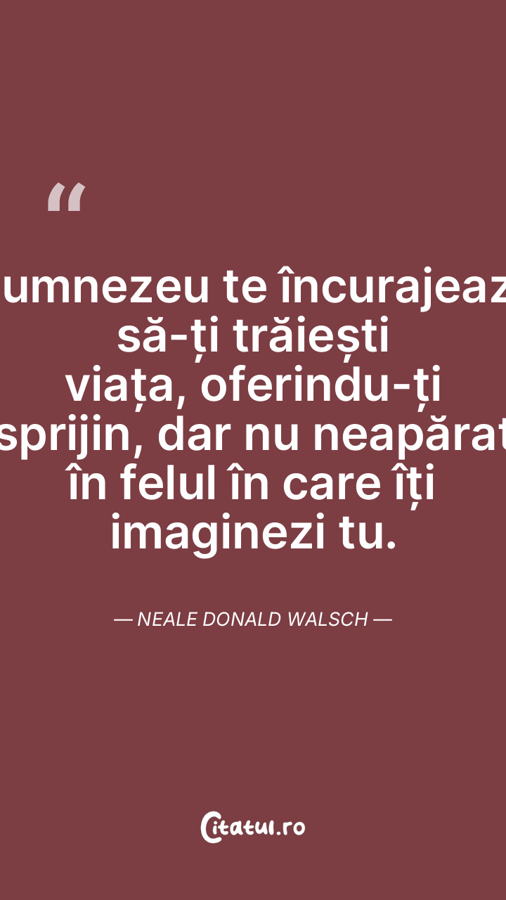 Dumnezeu te încurajează să-ți trăiești viața, oferindu-ți sprijin, dar nu neapărat în felul în care îți imaginezi tu. Neale Donald Walsch