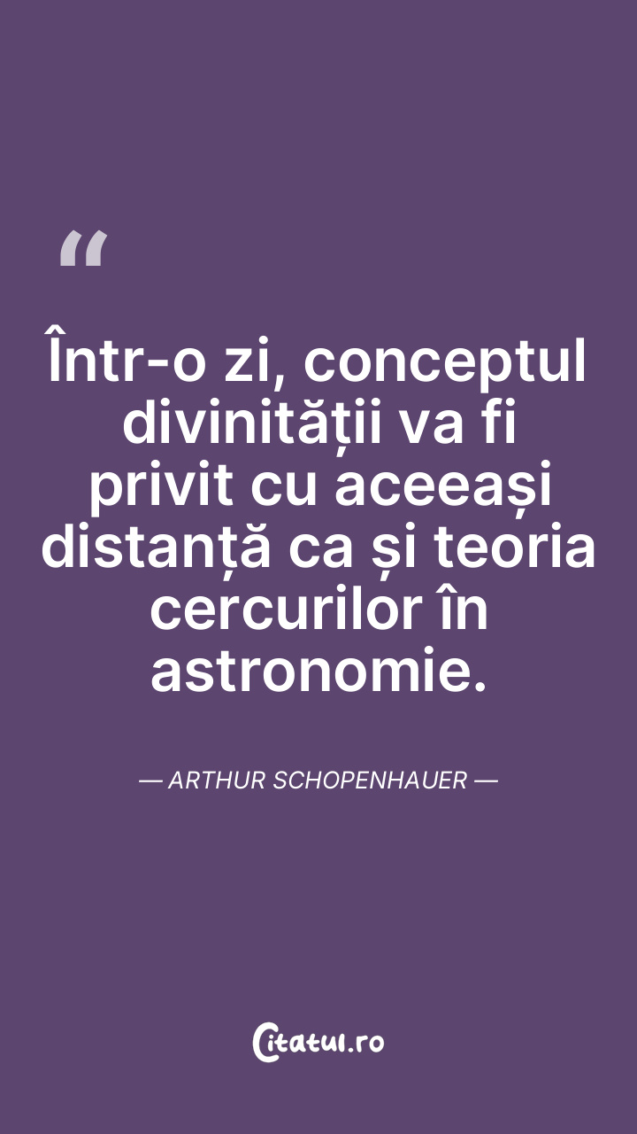 Într-o zi, conceptul divinității va fi privit cu aceeași distanță ca și teoria cercurilor în astronomie. Arthur Schopenhauer