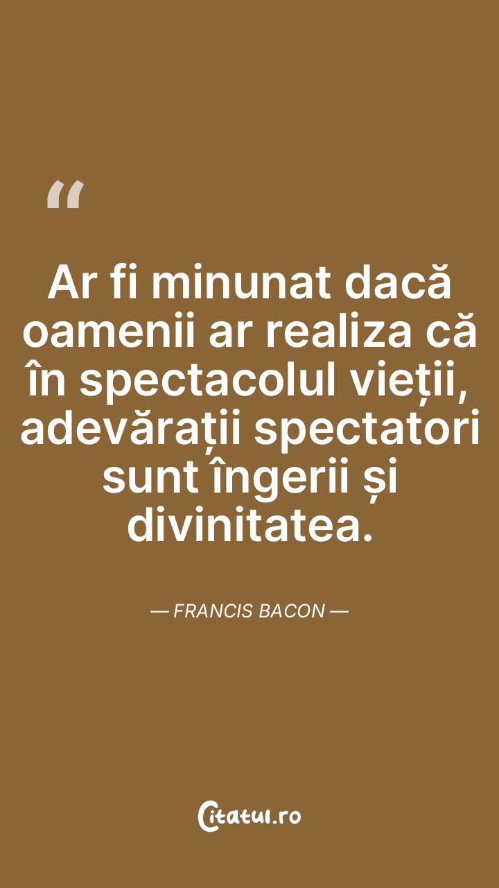 Ar fi minunat dacă oamenii ar realiza că în spectacolul vieții, adevărații spectatori sunt îngerii și divinitatea. Francis Bacon