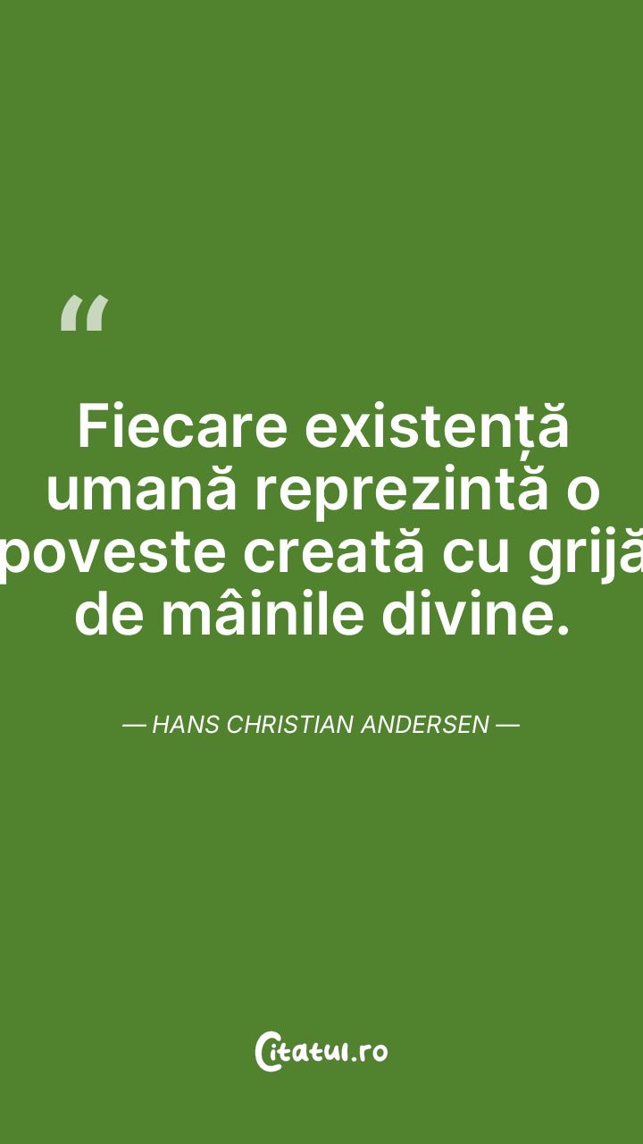 Fiecare existență umană reprezintă o poveste creată cu grijă de mâinile divine. Hans Christian Andersen