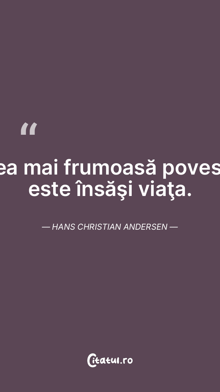 Cea mai frumoasă poveste este însăşi viaţa. Hans Christian Andersen