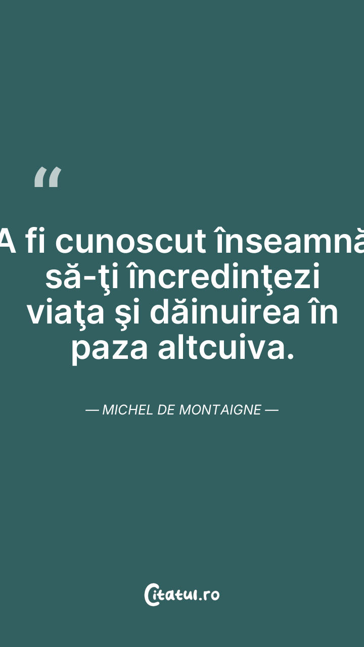 A fi cunoscut înseamnă să-ţi încredinţezi viaţa şi dăinuirea în paza altcuiva. Michel de Montaigne