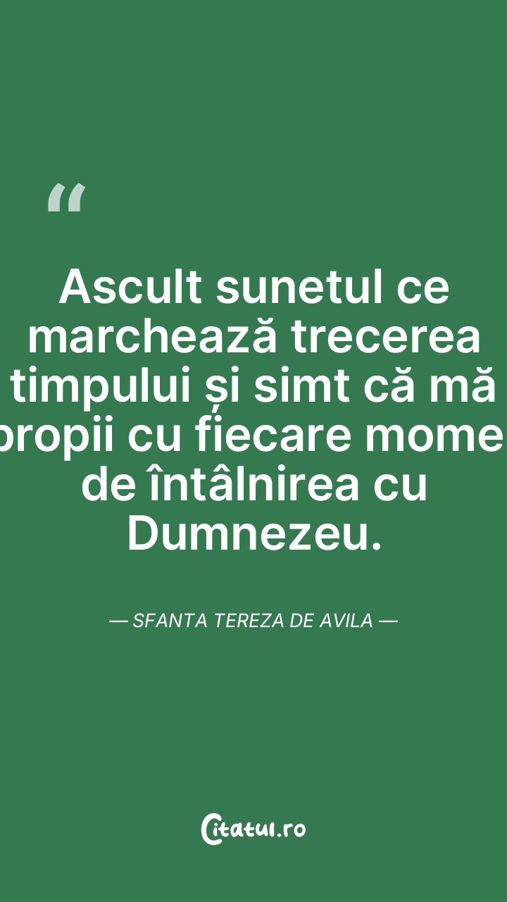 Ascult sunetul ce marchează trecerea timpului și simt că mă apropii cu fiecare moment de întâlnirea cu Dumnezeu. Sfanta Tereza De Avila