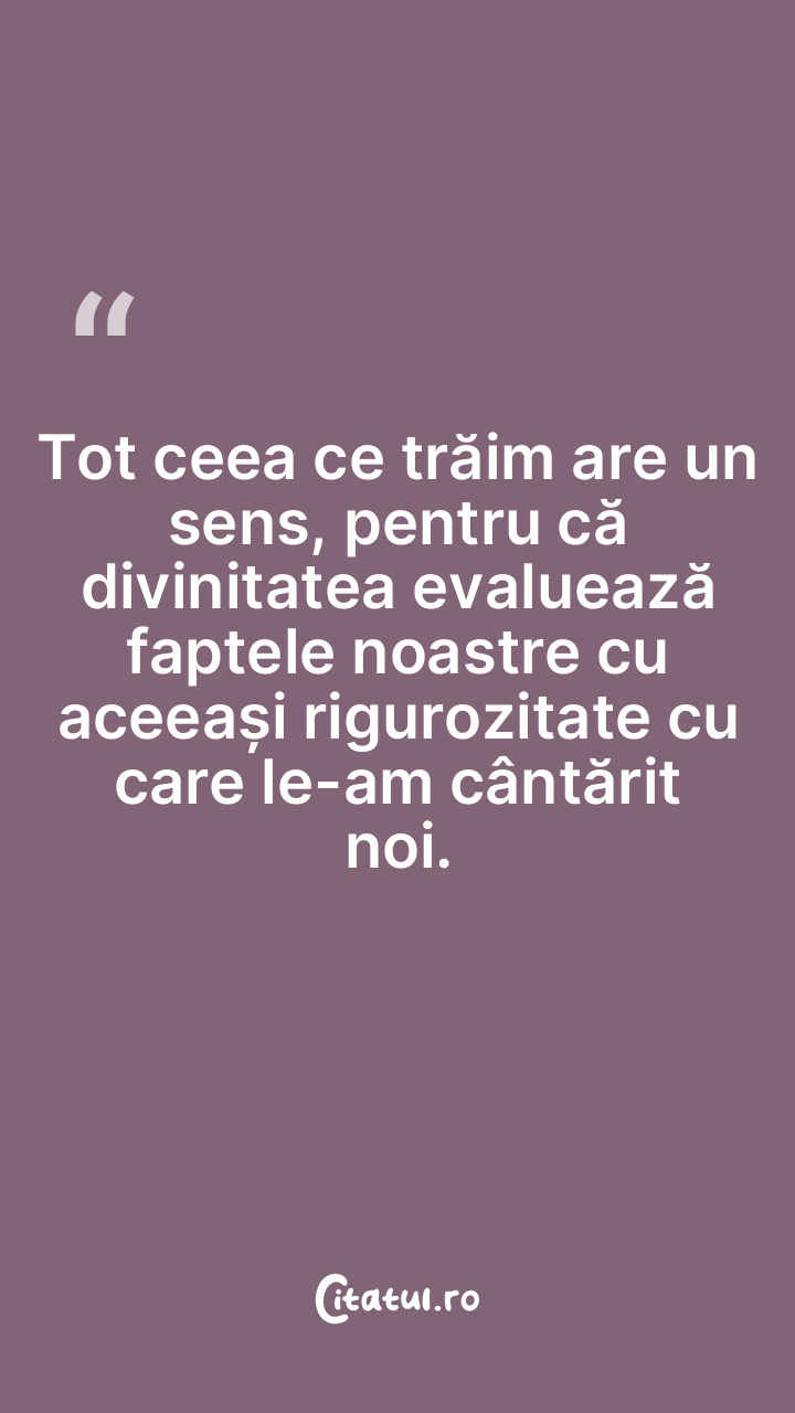 Tot ceea ce trăim are un sens, pentru că divinitatea evaluează faptele noastre cu aceeași rigurozitate cu care le-am cântărit noi.