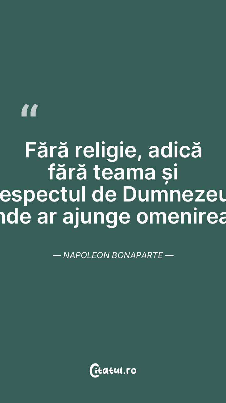 Fără religie, adică fără teama și respectul de Dumnezeu, unde ar ajunge omenirea ? Napoleon Bonaparte