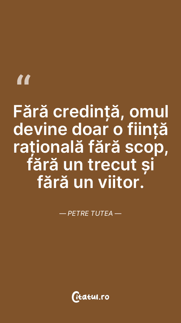 Fără credință, omul devine doar o ființă rațională fără scop, fără un trecut și fără un viitor. Petre Tutea