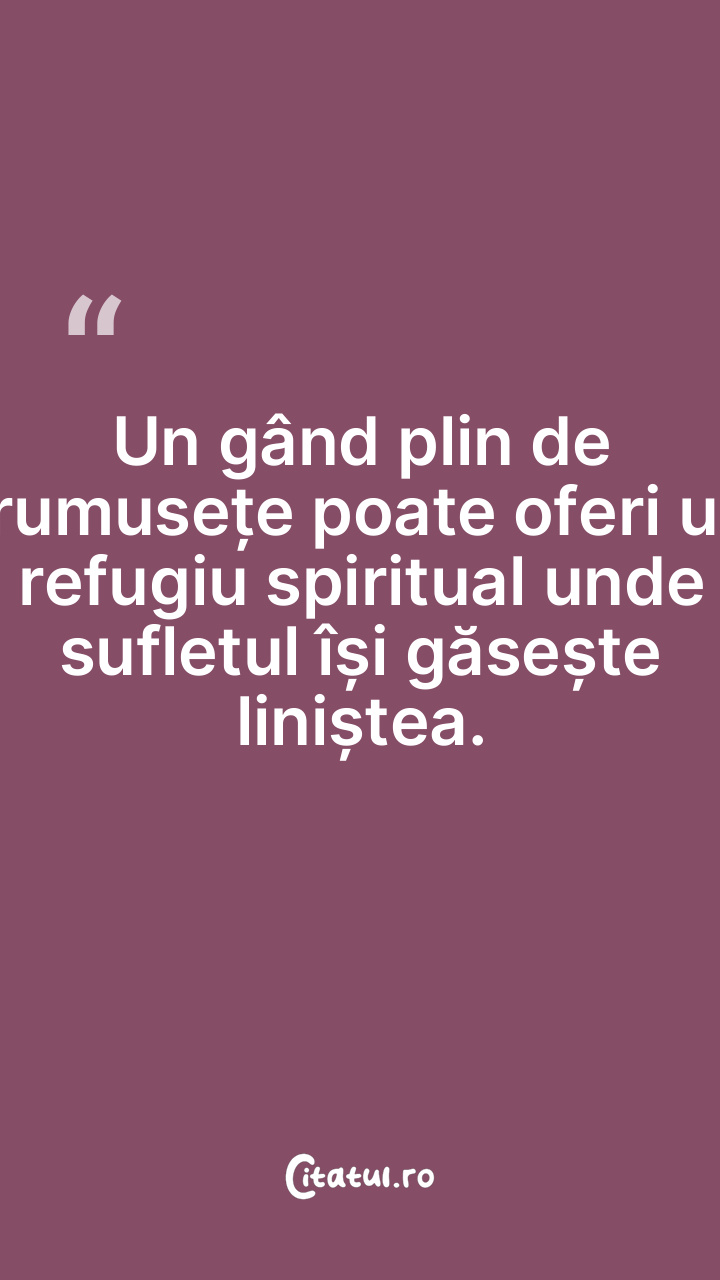 Un gând plin de frumusețe poate oferi un refugiu spiritual unde sufletul își găsește liniștea.