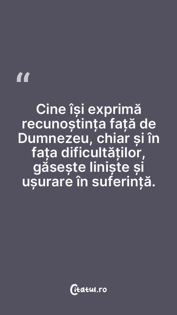 Cine își exprimă recunoștința față de Dumnezeu, chiar și în fața dificultăților, găsește liniște și ușurare în suferință.