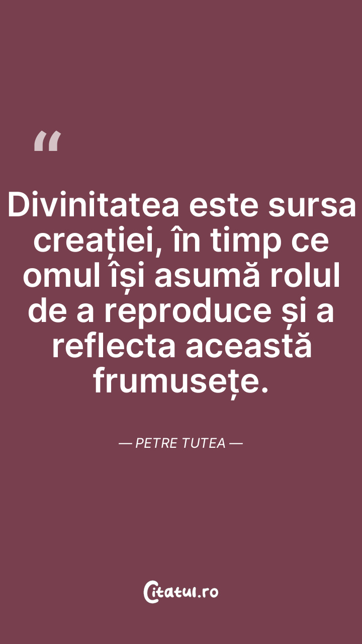 Divinitatea este sursa creației, în timp ce omul își asumă rolul de a reproduce și a reflecta această frumusețe. Petre Tutea