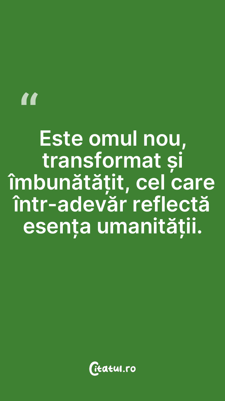 Este omul nou, transformat și îmbunătățit, cel care într-adevăr reflectă esența umanității.