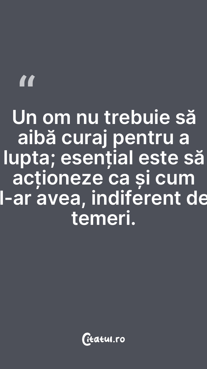 Un om nu trebuie să aibă curaj pentru a lupta; esențial este să acționeze ca și cum l-ar avea, indiferent de temeri.