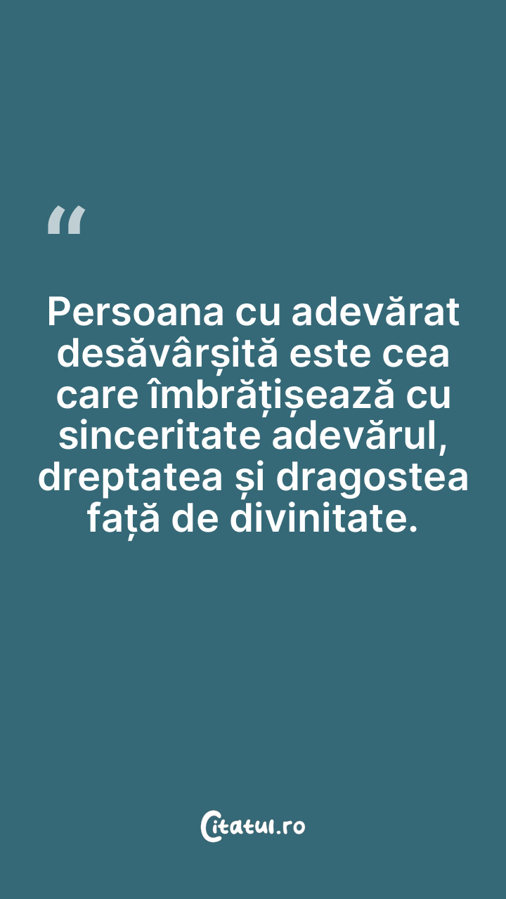 Persoana cu adevărat desăvârșită este cea care îmbrățișează cu sinceritate adevărul, dreptatea și dragostea față de divinitate.