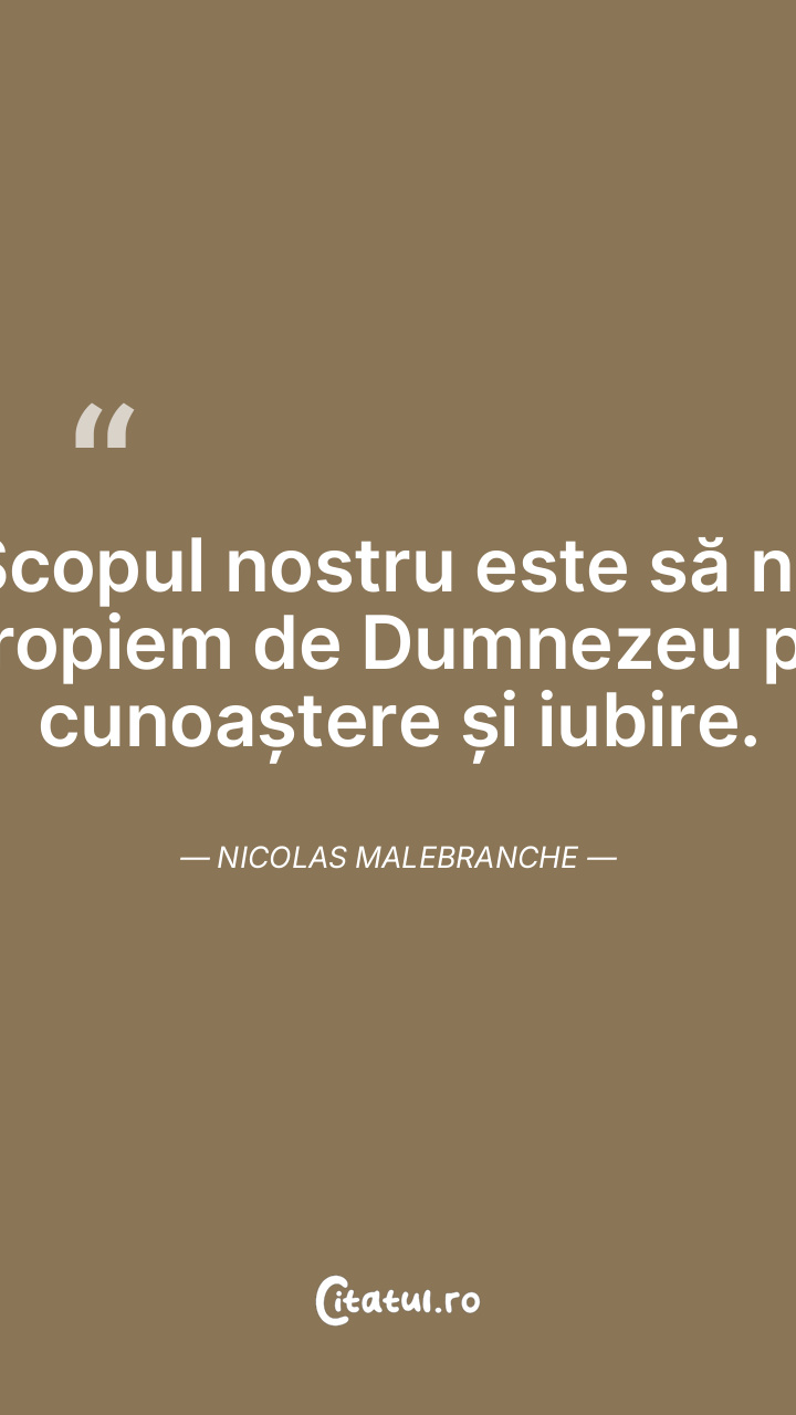 Scopul nostru este să ne apropiem de Dumnezeu prin cunoaștere și iubire. Nicolas Malebranche