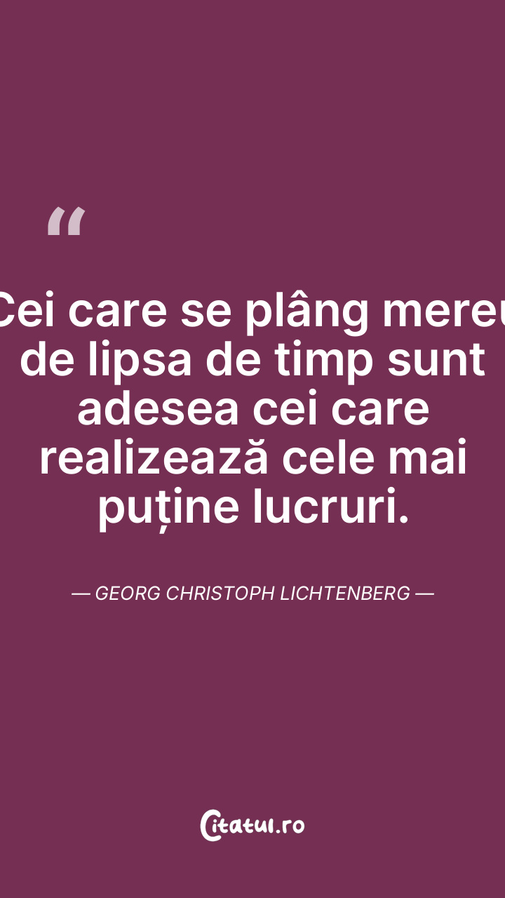 Cei care se plâng mereu de lipsa de timp sunt adesea cei care realizează cele mai puține lucruri. Georg Christoph Lichtenberg