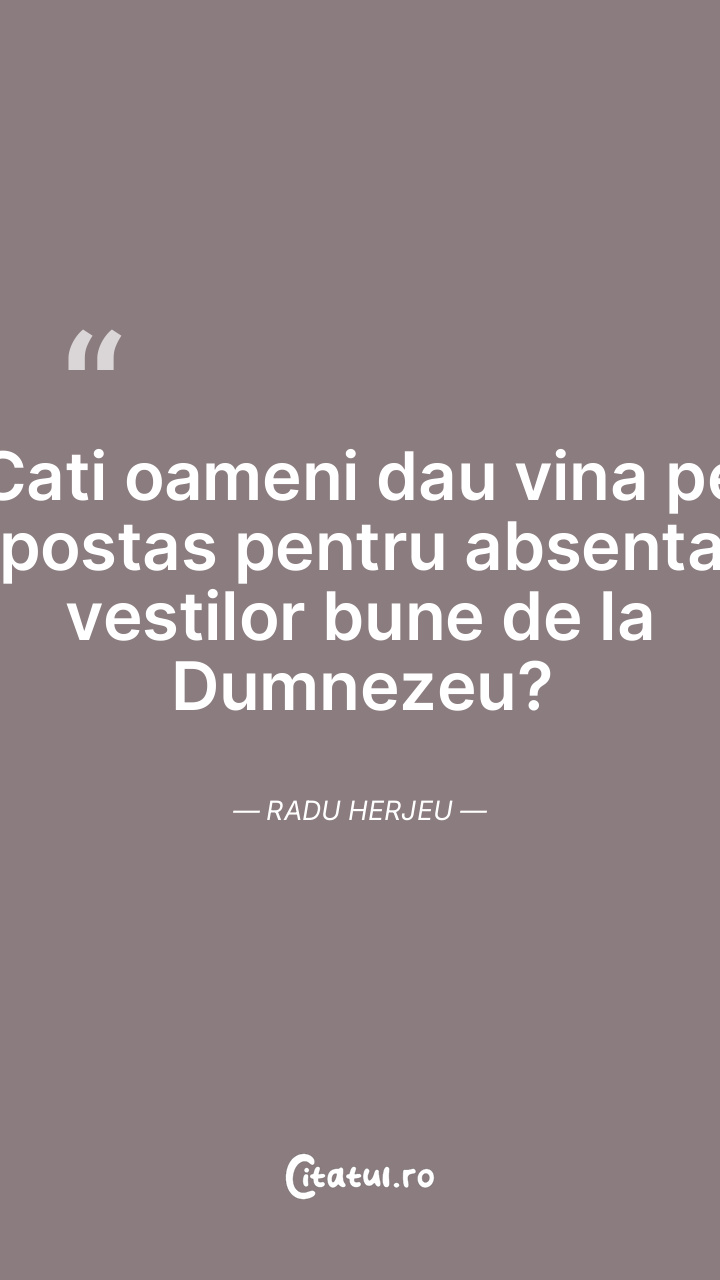 Cati oameni dau vina pe postas pentru absenta vestilor bune de la Dumnezeu? Radu Herjeu