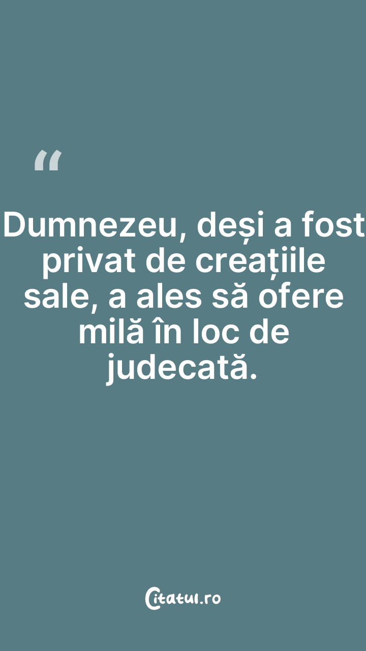 Dumnezeu, deși a fost privat de creațiile sale, a ales să ofere milă în loc de judecată.