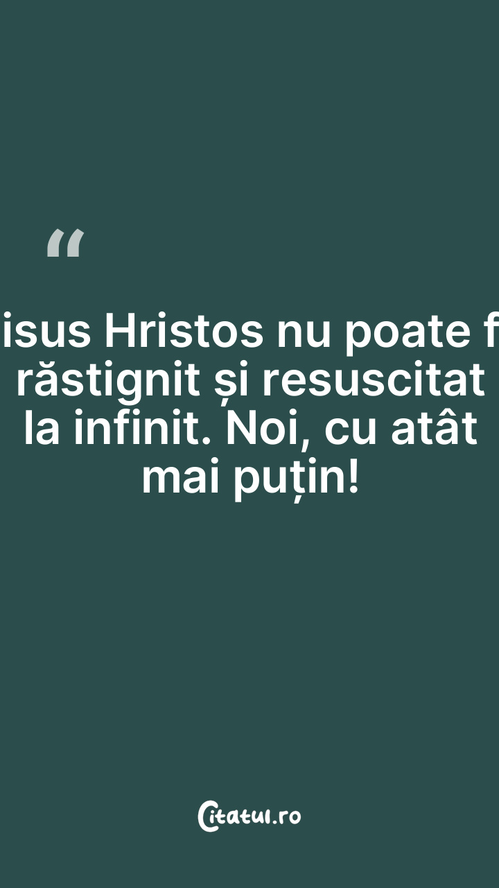 Iisus Hristos nu poate fi răstignit și resuscitat la infinit. Noi, cu atât mai puțin!