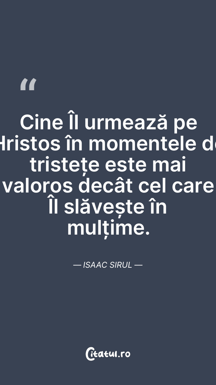 Cine Îl urmează pe Hristos în momentele de tristețe este mai valoros decât cel care Îl slăvește în mulțime. Isaac Sirul
