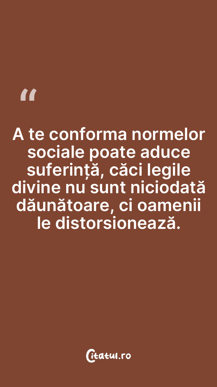 A te conforma normelor sociale poate aduce suferință, căci legile divine nu sunt niciodată dăunătoare, ci oamenii le distorsionează.