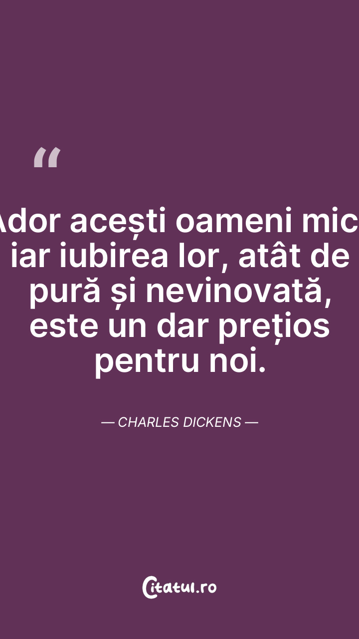 Ador acești oameni mici, iar iubirea lor, atât de pură și nevinovată, este un dar prețios pentru noi. Charles Dickens
