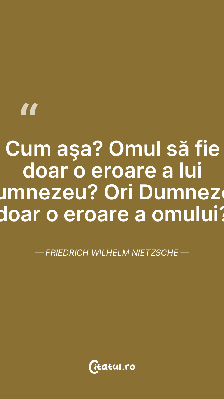 Cum aşa? Omul să fie doar o eroare a lui Dumnezeu? Ori Dumnezeu doar o eroare a omului? Friedrich Wilhelm Nietzsche