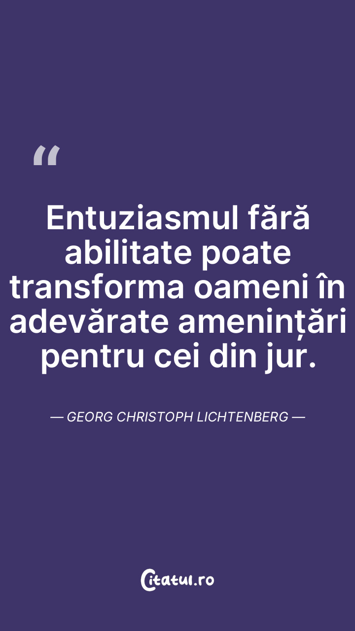 Entuziasmul fără abilitate poate transforma oameni în adevărate amenințări pentru cei din jur. Georg Christoph Lichtenberg