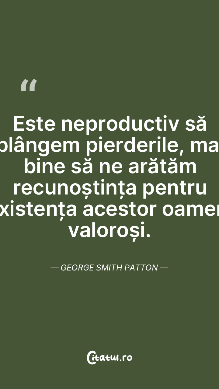 Este neproductiv să plângem pierderile, mai bine să ne arătăm recunoștința pentru existența acestor oameni valoroși. George Smith Patton