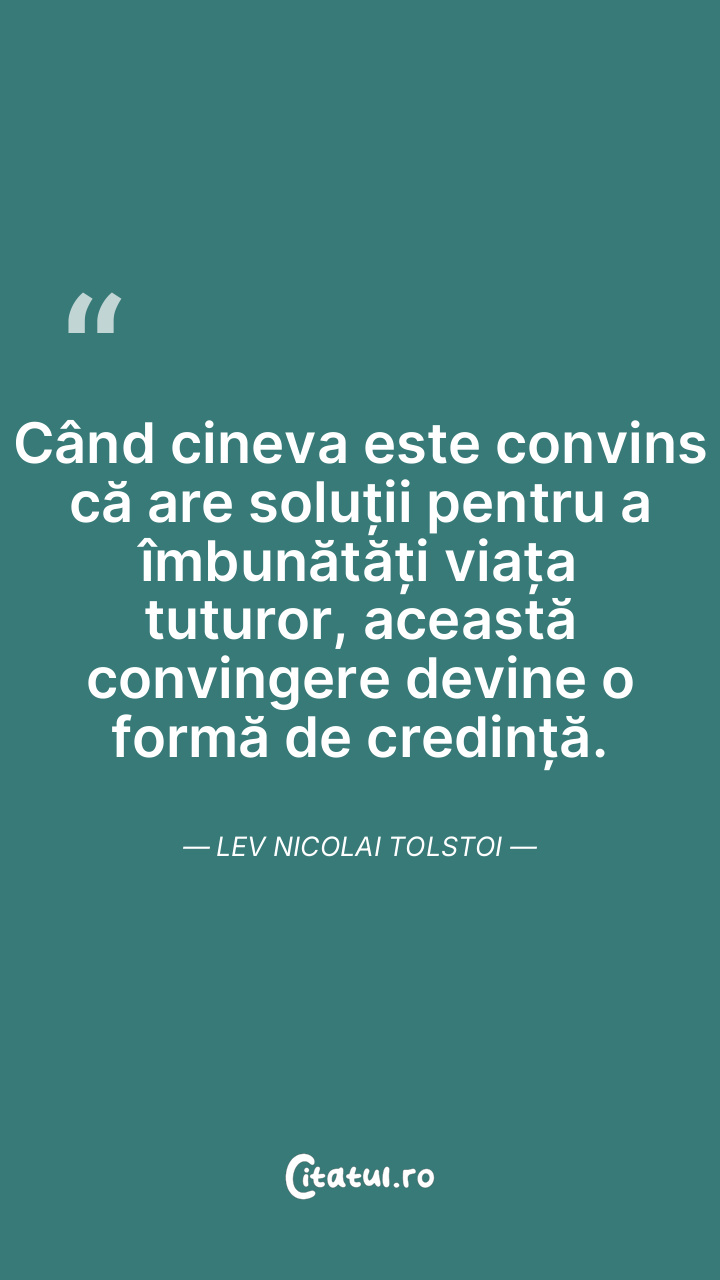 Când cineva este convins că are soluții pentru a îmbunătăți viața tuturor, această convingere devine o formă de credință. Lev Nicolai Tolstoi