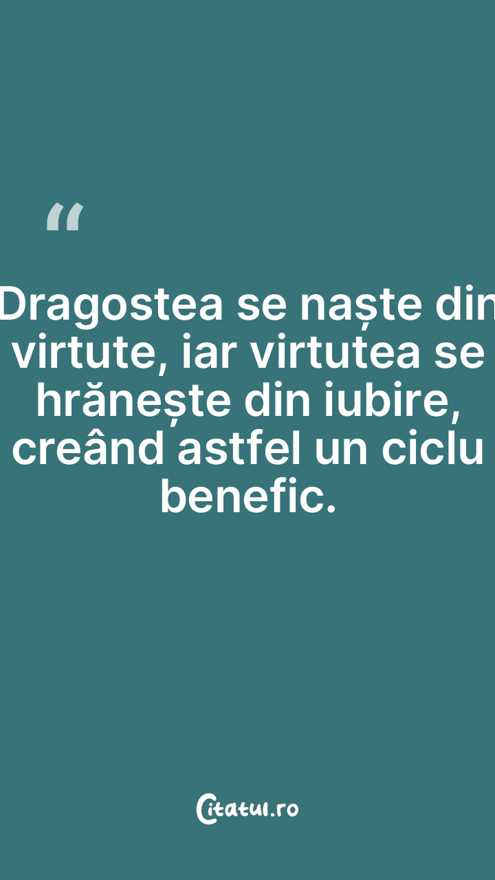 Dragostea se naște din virtute, iar virtutea se hrănește din iubire, creând astfel un ciclu benefic.