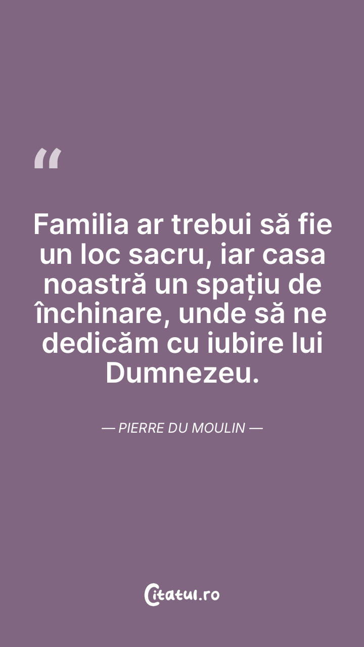Familia ar trebui să fie un loc sacru, iar casa noastră un spațiu de închinare, unde să ne dedicăm cu iubire lui Dumnezeu. Pierre Du Moulin