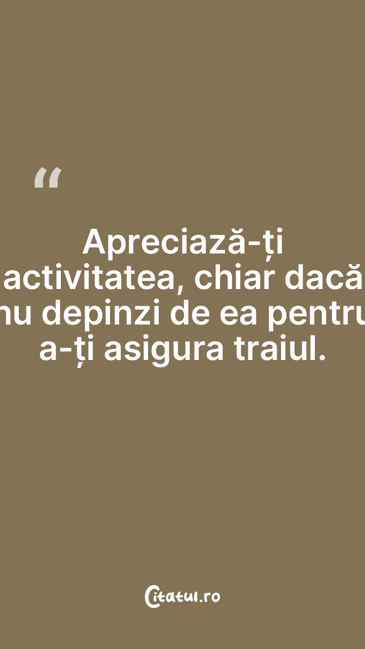 Apreciază-ți activitatea, chiar dacă nu depinzi de...