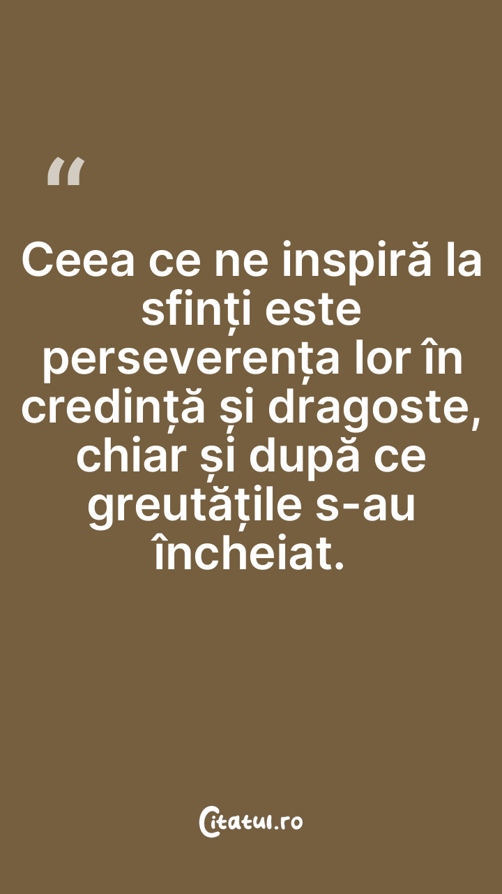 Ceea ce ne inspiră la sfinți este perseverența lor...