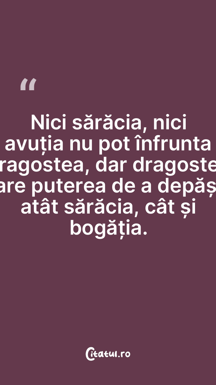 Nici sărăcia, nici avuția nu pot înfrunta dragostea, dar dragostea are puterea de a depăși atât sărăcia, cât și bogăția.